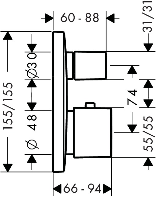 Комплектация: термостат с запорным вентилем, декоративная панель (для монтажа необходим встраиваемый блок Hansgrohe iBox Universal арт. 01800180);
