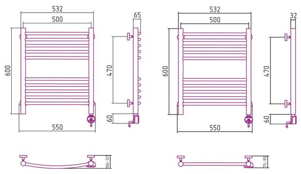 - Температура поверхности полотенцесушителя - 55°С±10%;
